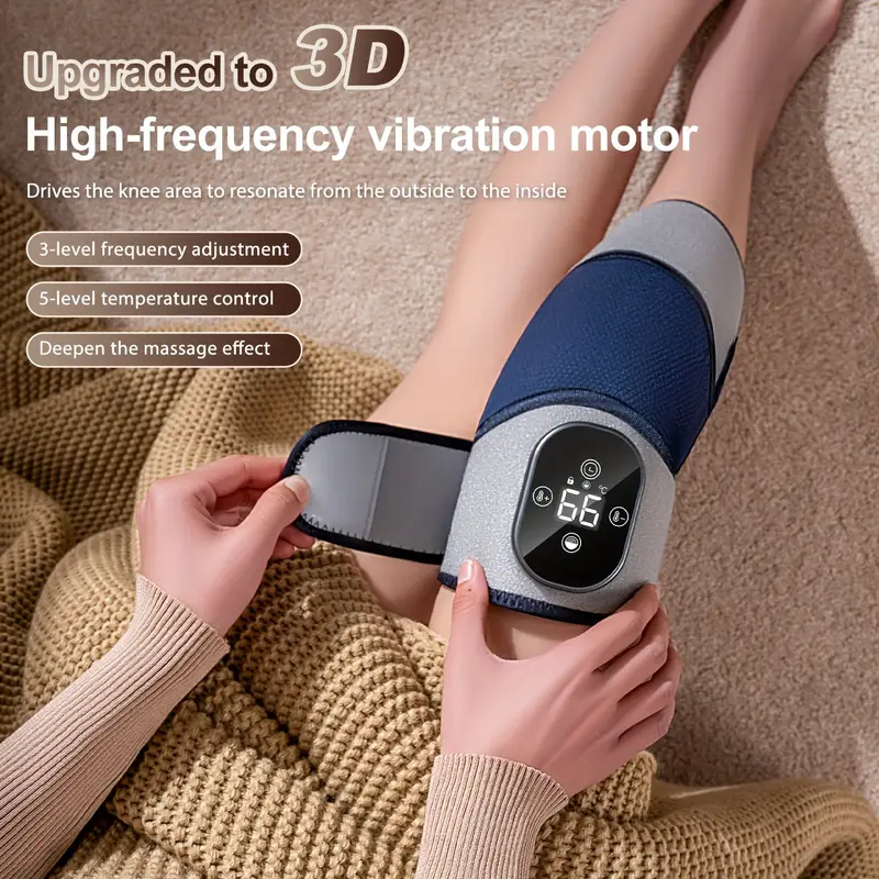 The knee massager features heating options with five temperature settings (45℃/50℃/55℃/60℃/65℃) and three vibration modes, designed to soothe and relax your knees, elbows, and shoulders.