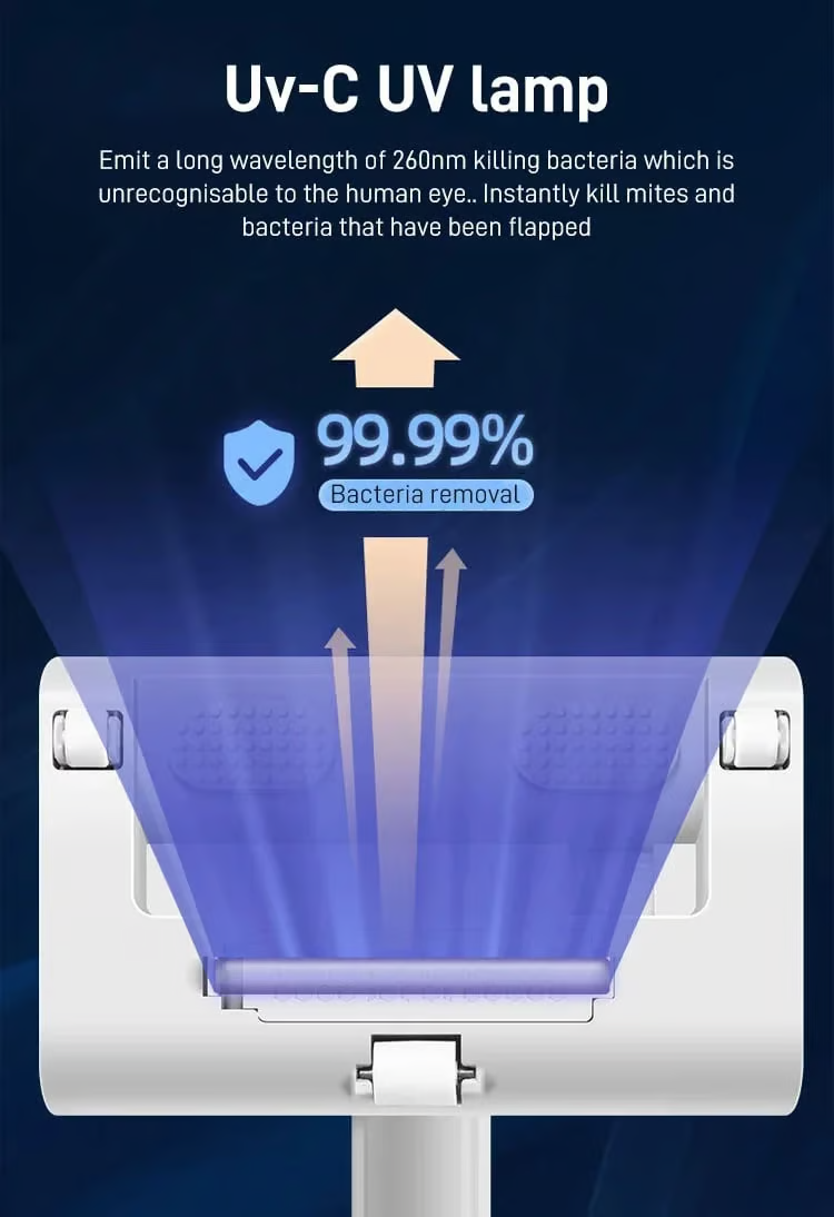 The mattress cleaner machine has 12kpa suction and a 50w motor. Targeted mattress vacuum removes dust and grime from fabrics and deep cleans your bed, pillows, carpet.