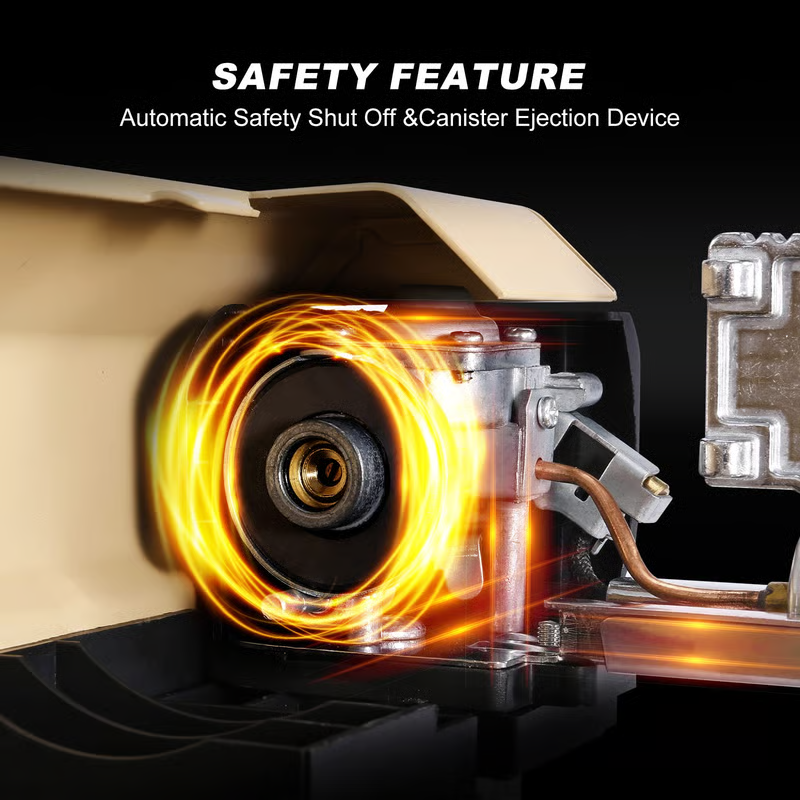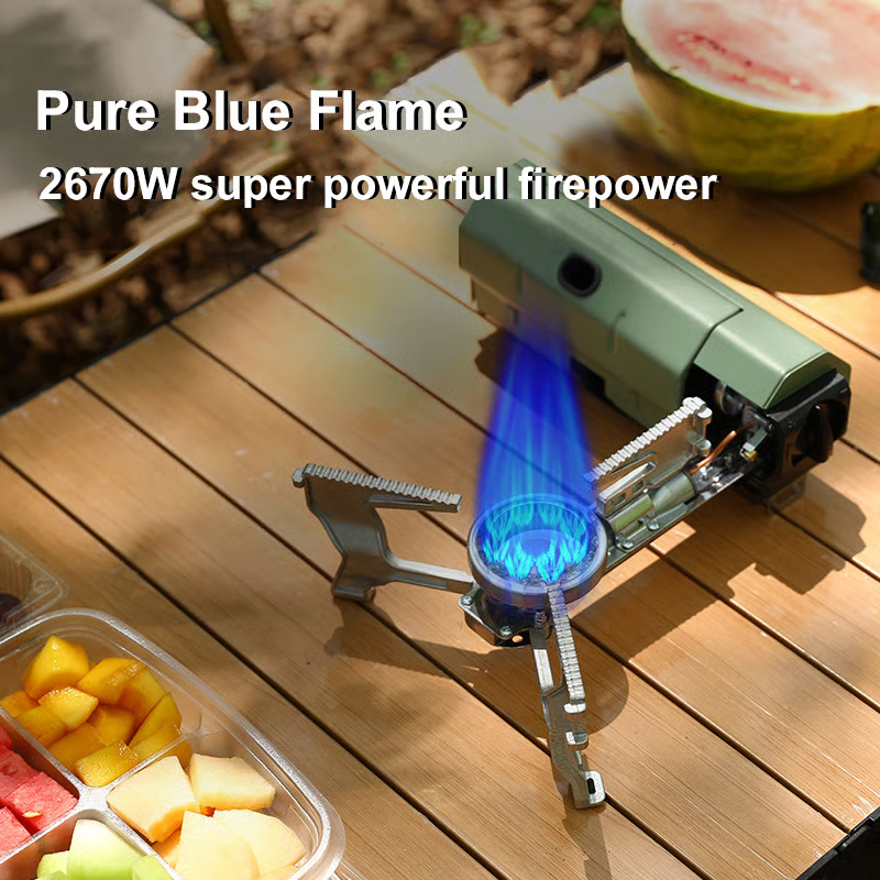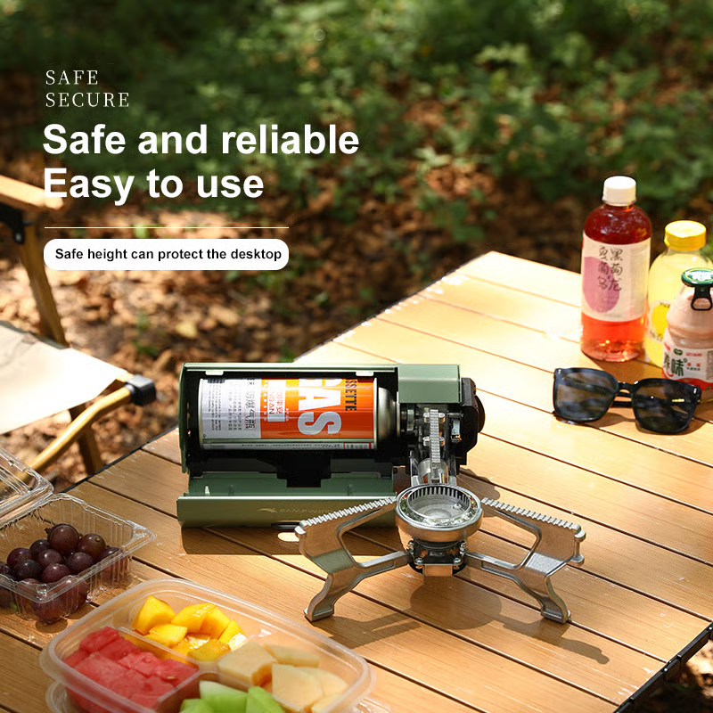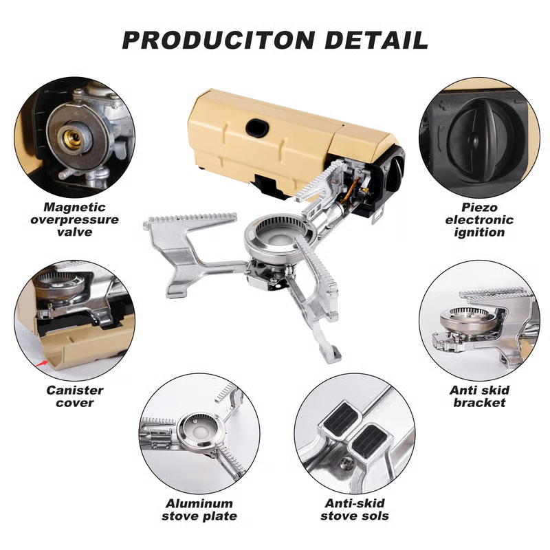 Our cassette stove is made of large serrated stainless steel material, and the bottom of the legs adopts a non-slip design, which is stable and does not shift. In addition, it has a reliable design - magnetic overpressure protection valve. When the pressure in the gas storage tank is too high, the gas storage tank will automatically fall off, cut off the gas source and cannot be used.