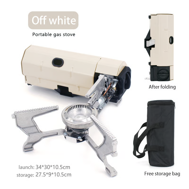 The furnace head of the cassette stove can be locked and used after rotating 90°. The operation is very simple, convenient, quick and easy to use. The large area of the tripod can be accommodated in the main body where the cassette cylinder is set. Since it is upright, it saves a lot of storage space. It also comes with a storage bag so you can take it with you when you travel.