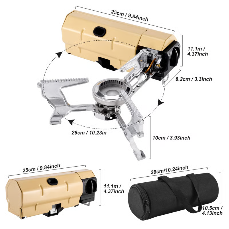 This cassette stove features an electronic ignition switch and durable rotary control knob. The fire power can be adjusted freely to meet your various cooking needs. And the stove is designed with a vertical fire outlet, which can prevent wind.