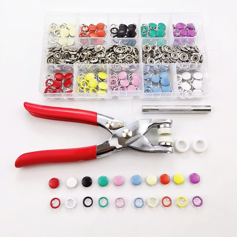 Metal Snaps Buttons With Fastener Pliers Press Tool Kit (10 Colors,9.5mm)