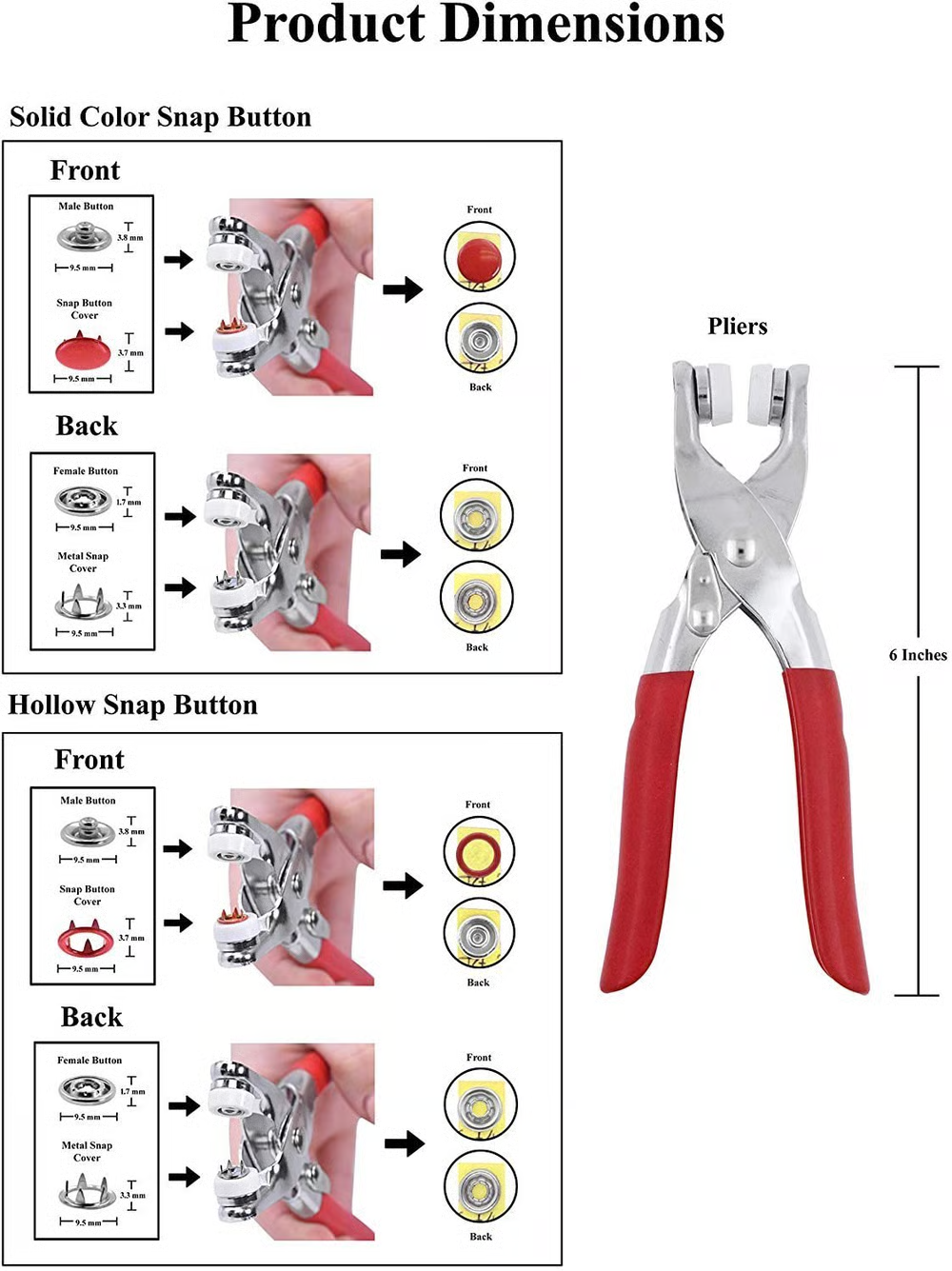 【Easy To Use】: No need for hammer. No need to make hole first. Just follow our videos or read the installation instruction and you can make what you want. After you install the snaps on the cloth you want. The fabric snap will be won’t fall because the five sharp corner can make the snap steady, while other tools can’t do. Lightweight, easy to operate, portable.