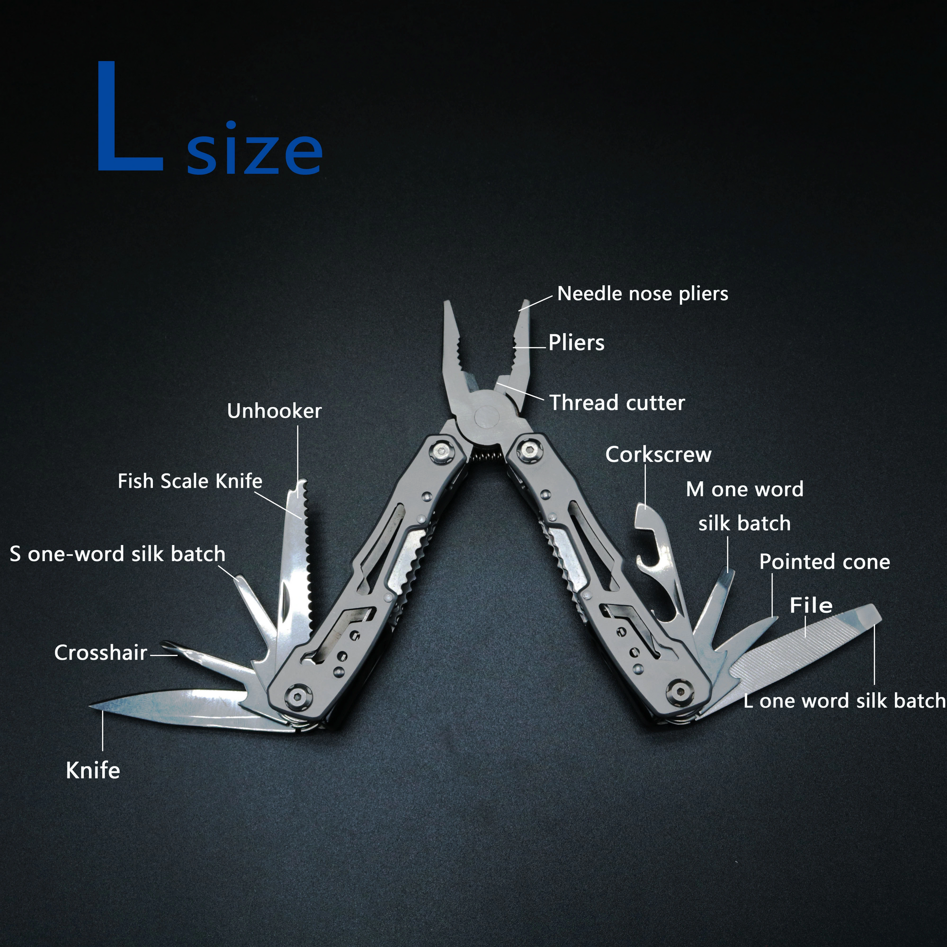 Meet the multi-functional pliers, your all-in-one solution with a built-in knife, screwdriver, and more, designed to tackle various tasks with ease."