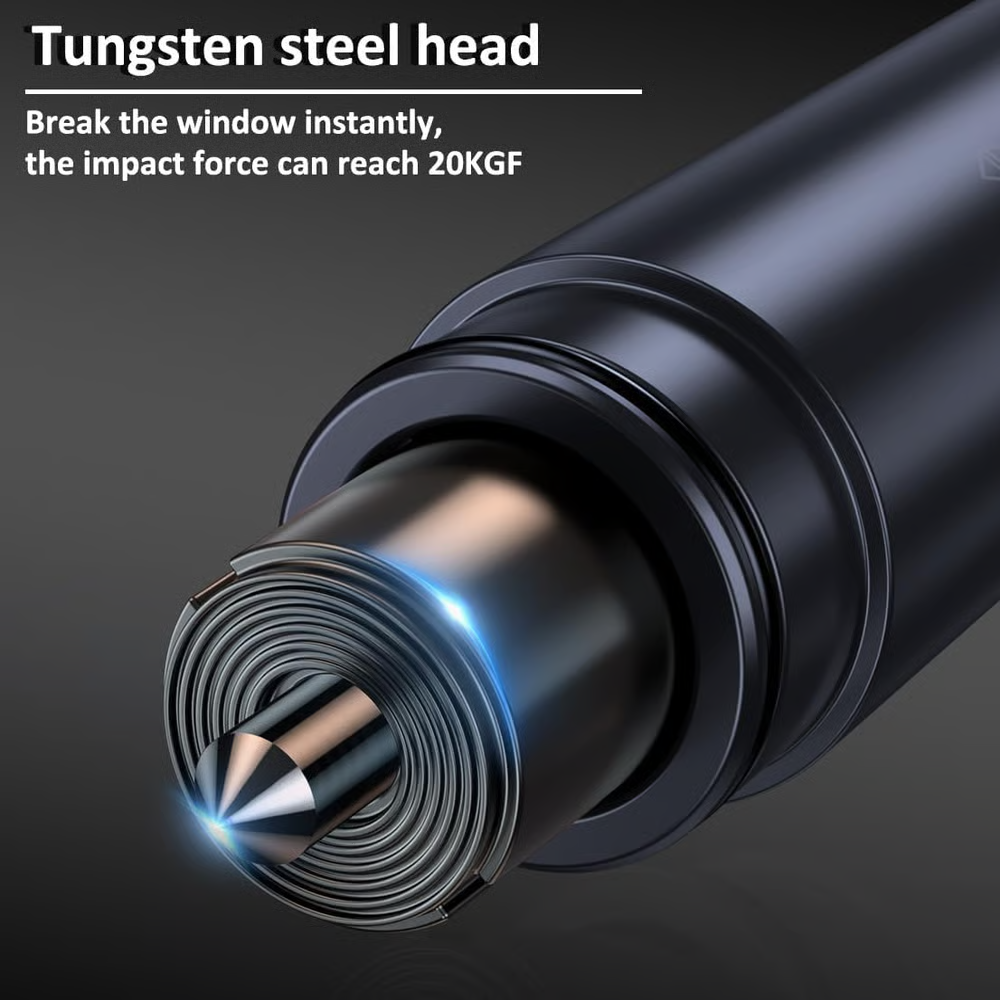 🔨 Powerful Window Breaker: Built with a 55HRC tungsten steel tip and high-pressure spring, it delivers 20KGF of force to break tempered windows. Tip remains safely hidden until activated.