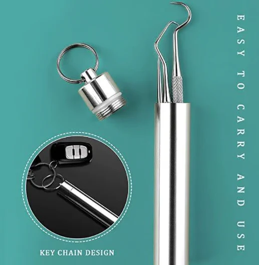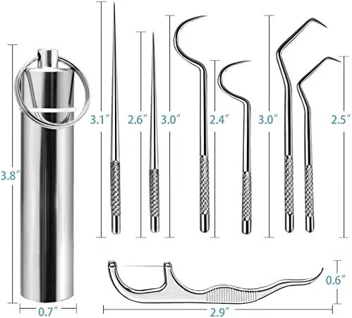 - Portable Stainless Steel Toothpicks Instead of the cheap & weak dental scraping tools. It is made of smooth stainless steel metal with ultimate strength.